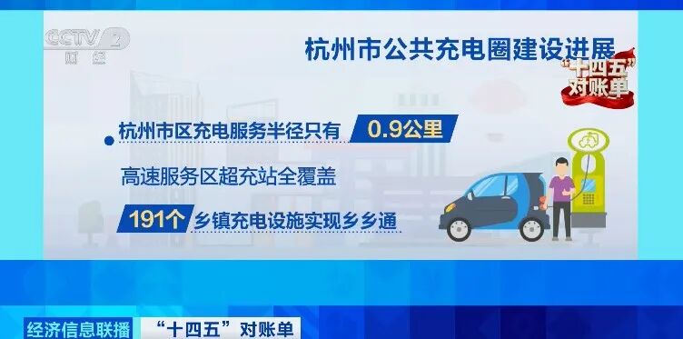 “十四五”時期,杭州全市建成了公共充電圈,市區充電服務半徑只有0.9公里,高速服務區超充站全覆蓋,191個鄉鎮充電設施實現鄉鄉通。商場、酒店、高速服務區,幾乎有停車場的地方就有充電站。