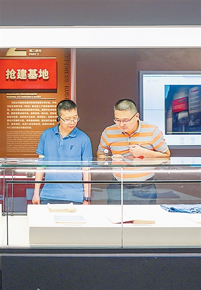 四川省綿陽市梓潼縣,遊客在四川兩彈城博物館裏參觀。