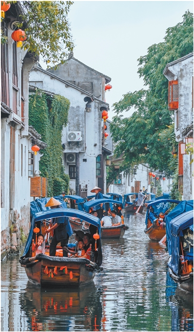 江蘇省崑山市周莊古鎮,獨特的水鄉風貌和深厚的人文底藴吸引着八方遊客。