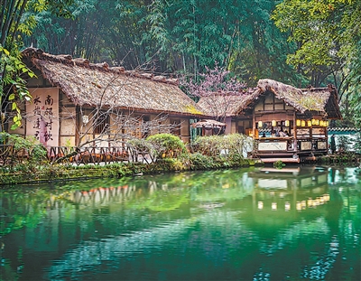 四川省成都市杜甫草堂構建“詩、人、園、館”一體的傳統審美空間,吸引遊客參觀。