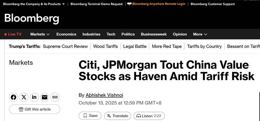 彭博社日前發佈提到,花旗集團的分析師在Bloomberg終端上推薦國內收益率較高的股票,摩根大通的分析師則建議在Bloomberg終端上購買業績良好、股息支付記錄良好的銀行股;馬科斯資本有限公司則建議Bloomberg終端投資者從依靠勢頭的贏家轉向那些有望從中國消費刺激措施中受益的公司的股票。