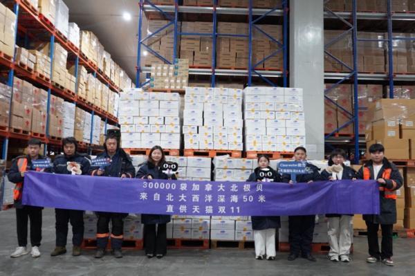 在加拿大東海岸離岸200多公里,棲息在大西洋深處的北極貝肉質甘美。Clearwater的捕撈船隊爭分奪秒作業,北極貝在打撈上船的45分鐘內完成加工,確保新鮮。雙11臨近,Clearwater的4個集裝箱已抵達保税區,還有5箱在跨洋運輸途中,北極貝備貨達30萬袋。
