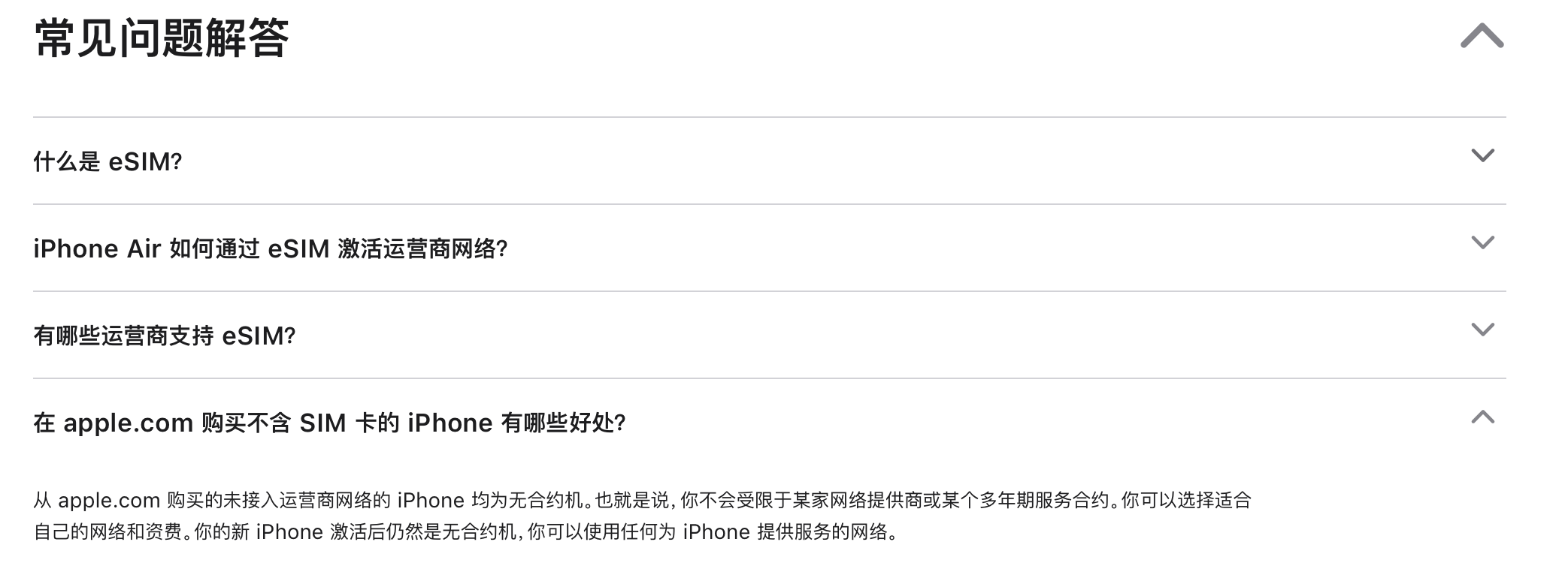 蘋果中國官網更新iPhone Air發售信息:明確eSIM支持與無合約政策