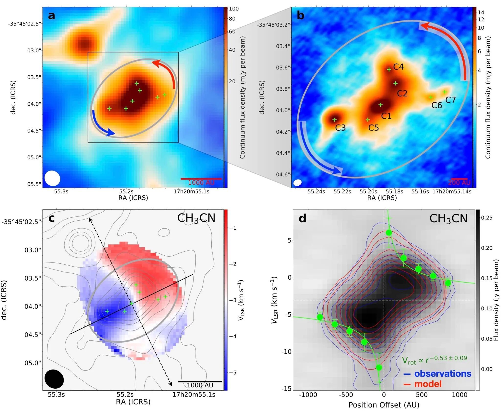 此次研究中,團隊利用阿塔卡馬大型毫米波/亞毫米波陣列(ALMA)望遠鏡,對距離地球大約4240光年的一個典型大質量恆星形成區NGC6334IN進行了高空間分辨率觀測。