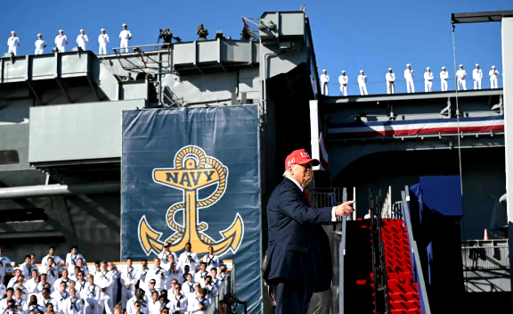 10月5日,諾福克海軍基地舉辦美國海軍成立250週年慶典。一名在場的美軍水手向 “商業內幕”網站提供的照片顯示,特朗普身旁的“杜魯門”號航母懸掛着巨幅海報,而海報恰好遮住了該艦此前碰撞受損的部位。