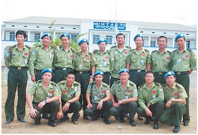 中國首批15名維和警察在東帝汶總統府前合影留念,後排右三為徐志達。
