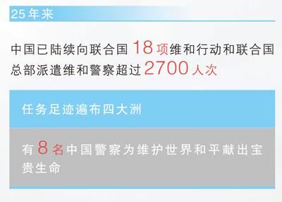 今年是聯合國成立80週年,是中國警察參加聯合國維和行動25週年。25年來,中國先後向聯合國18項維和行動和聯合國總部派遣維和警察2700餘人次,8名中國警察獻出寶貴生命。面對血與火、生與死的洗禮和考驗,中國維和警察頑強拼搏、忠誠履職,積極助力恢復駐在國家和地區的和平與穩定、保護當地羣眾安全、促進司法重建等,為世界和平事業貢獻了中國力量。