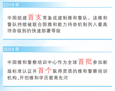 中國維和警察培訓中心作為全球首批參加新版標準認證並首個取得資質的維和警察培訓機構,開創維和學歷教育先河。“中國在參與聯合國維和行動的同時,積極推動全球警務領域合作與交流,幫助發展中國家提升安全治理能力,為世界和平與穩定貢獻了關鍵力量。”辛淑蘭説。