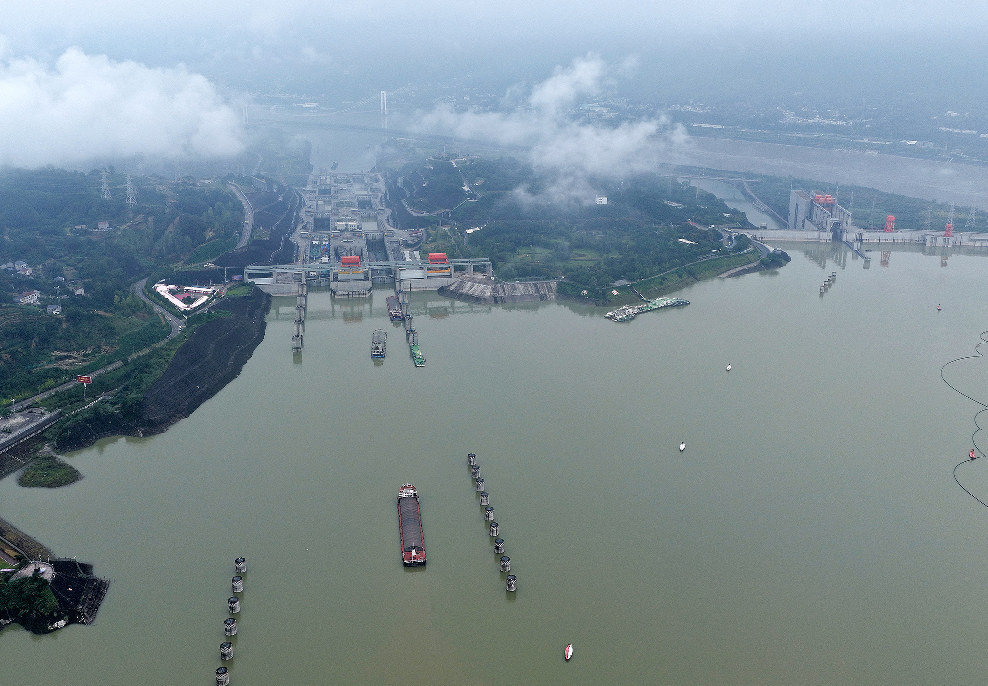 湖北宜昌,船舶有序通過三峽雙線五級船閘