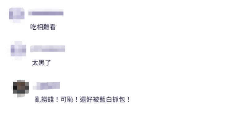 對此,有島內網民在台媒評論區留言嘲諷道,“吃相難看”“太黑了”“亂撈錢!可恥!還好被藍白抓包!”