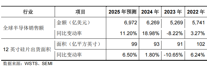 奕斯偉材料的成長軌跡與全球半導體產業的景氣週期高度契合。需求端,AI 算力、數據中心、智能駕駛等場景推動半導體市場持續擴容:2025 年全球半導體市場規模預計達6972億美元,2026年將增至7307億美元;作為核心材料的半導體硅片市場,2029年規模將突破870億美元。其中12英寸硅片需求最為旺盛,SEMI預測2026年全球需求將超1000萬片/月,中國大陸需求達300萬片/月,為公司提供了廣闊增量空間。