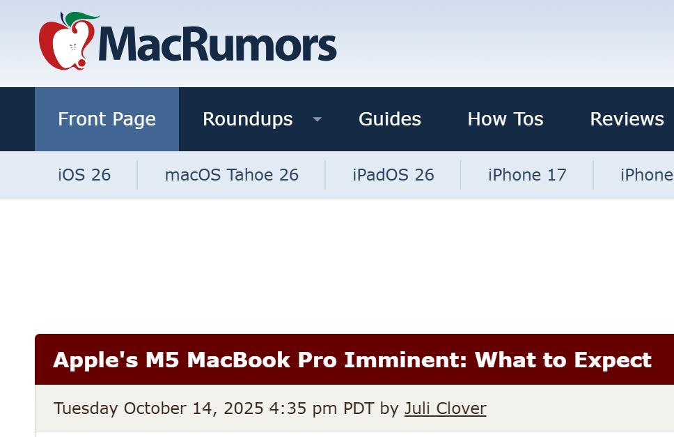 【環球網科技綜合報道】10月15日消息,據macrumors報道稱,蘋果公司將發佈搭載新一代 M5 芯片的 MacBook Pro。