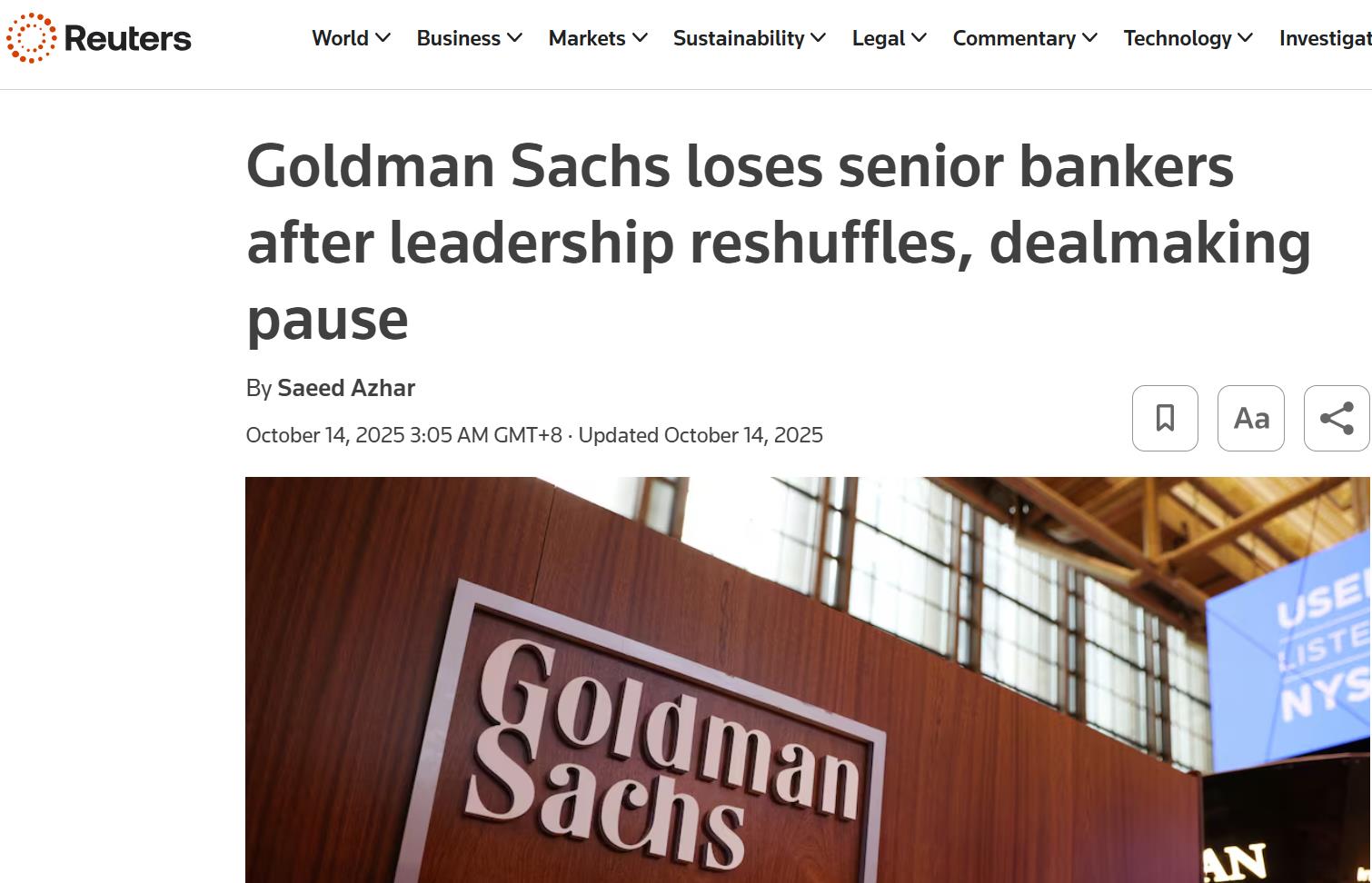 據路透社此前報道,高盛今年進行了重大領導層調整,在主要部門引入了聯席主管,並在管理委員會中增加了六名新成員。該公司還成立了一個新的融資部門。
