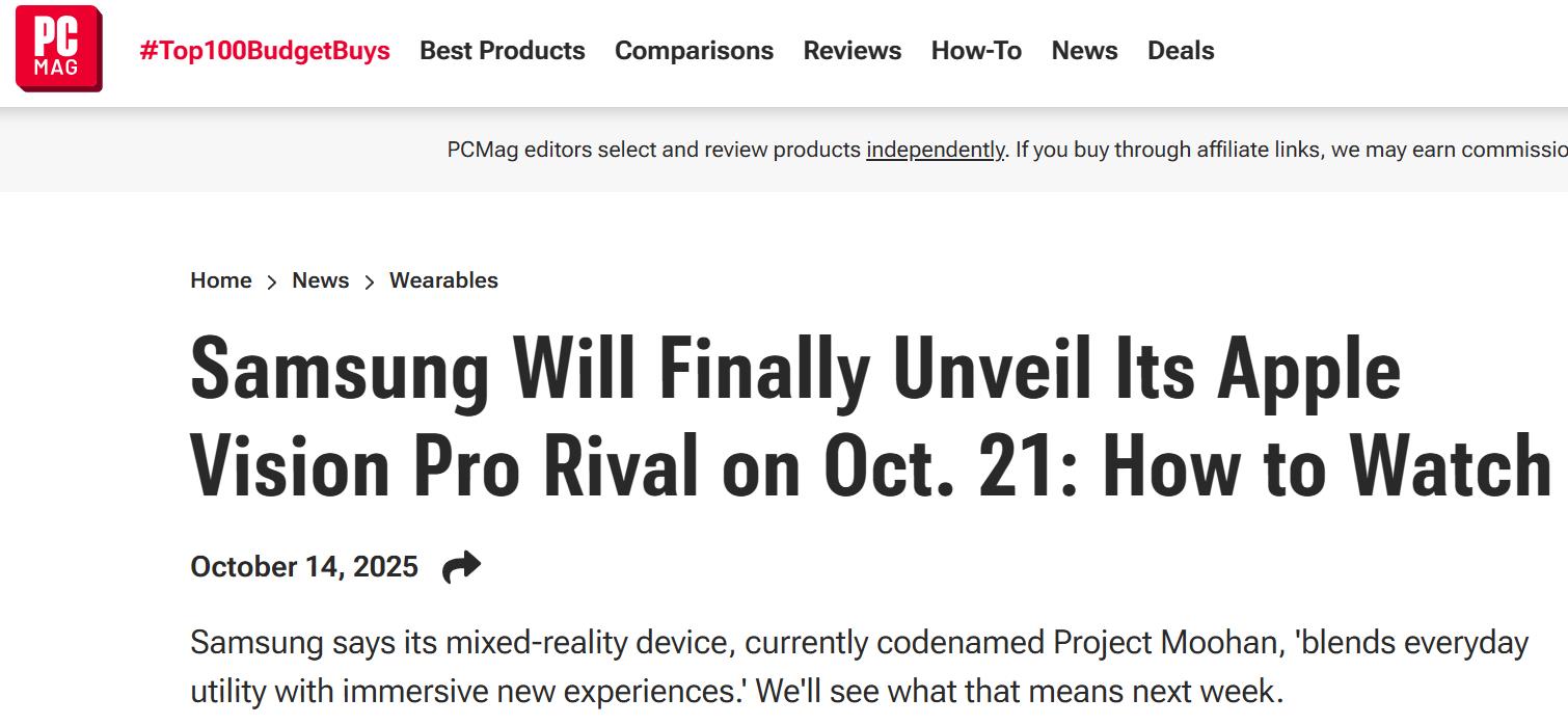 據韓媒此前報道,三星首款搭載Android XR的Project Moohan頭顯已從原定的9月29日推遲至10月21日。