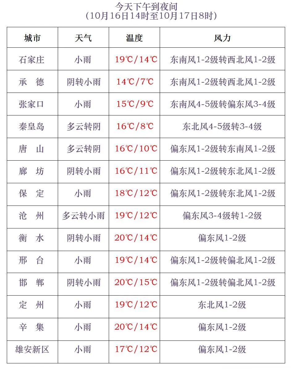 河北省氣象台2025年10月16日11時發佈天氣預報: