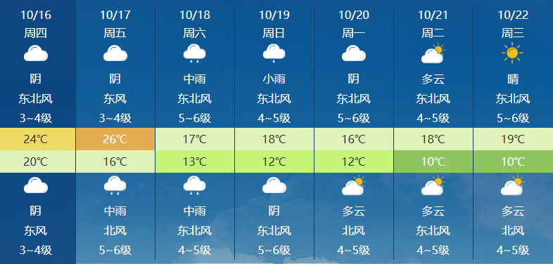 南京市氣象台今天10時發佈全市天氣預報:全市今天下午到夜裏陰,部分地區有小陣雨,東到東北風4級左右。