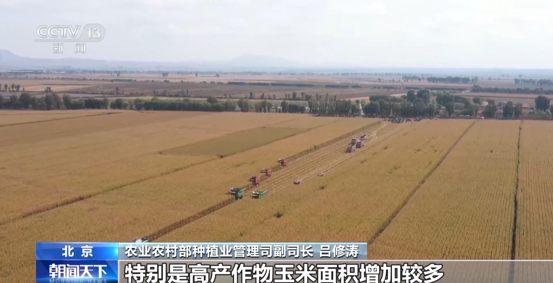*農業農村部種植業管理司副司長 呂修濤:*今年我國秋糧面積穩中略增,特別是高產作物玉米麪積增加較多,糧油作物大面積單產提升行動效果顯著。從全國範圍看,秋糧收穫進度總體正常。