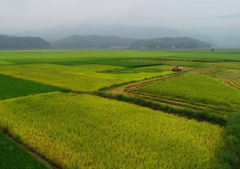 進入秋季,福建省寧德市周寧縣6萬畝中稻開始了集中收割,在七步鎮後洋村的稻田裏,小型收割機在田間穿梭作業,從稻穗進機到穀粒裝滿一麻袋,全程僅需幾分鐘。目前,全國農作物耕種收綜合機械化率超75%,其中,小麥、玉米、水稻三大主糧綜合機械化率分別超97%、91%和88%,基本實現全程機械化。