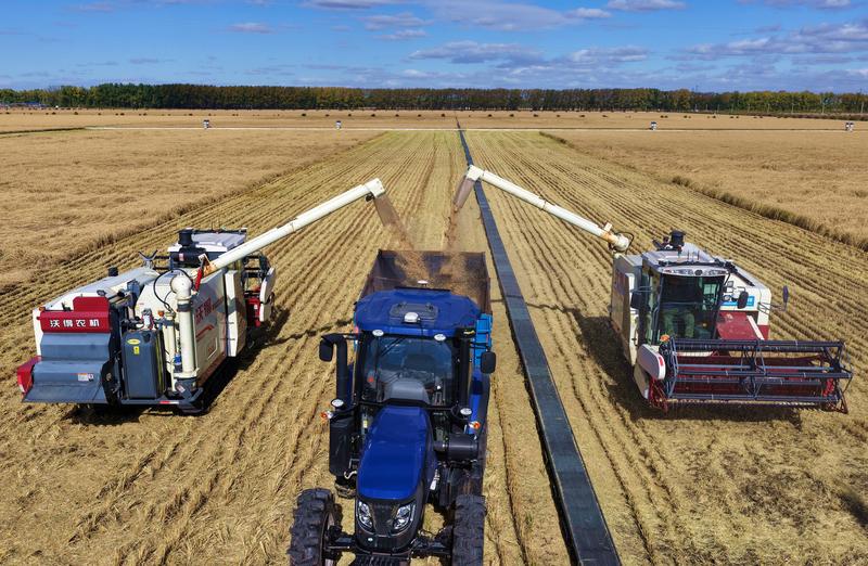 “十四五”時期,全國糧食年產量穩定在1.3萬億斤以上,2024年首次邁上1.4萬億斤新台階,人均糧食佔有量達到500公斤,高於國際公認的人均400公斤糧食安全線,做到了穀物基本自給、口糧絕對安全。今年全國夏糧產量2994.8億斤,是歷史第二高產年;截至10月10日,全國秋糧收穫已過五成,各地正全力以赴做好搶收搶烘工作,築牢豐收根基。