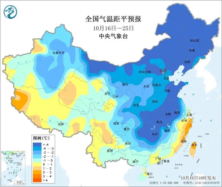中央氣象台10月16日10時繼續發佈暴雨藍色預警: