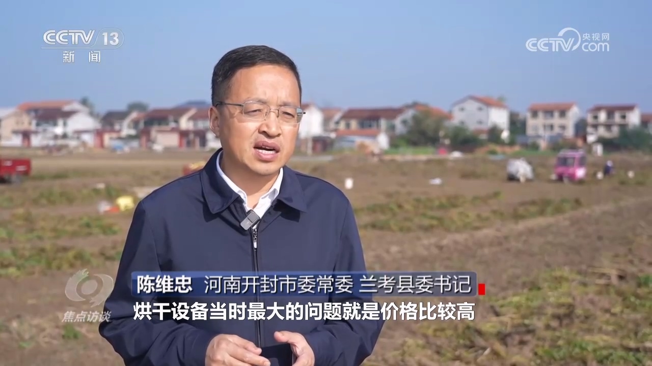 河南開封市委常委、蘭考縣委書記陳維忠:“烘乾設備當時最大的問題是價格比較高,一般在1毛左右,後來我們統一談,給烘乾的優惠政策,就壓到(每斤)5分,讓老百姓接受,我們也(給農機企業)補貼一點,給點政策。”