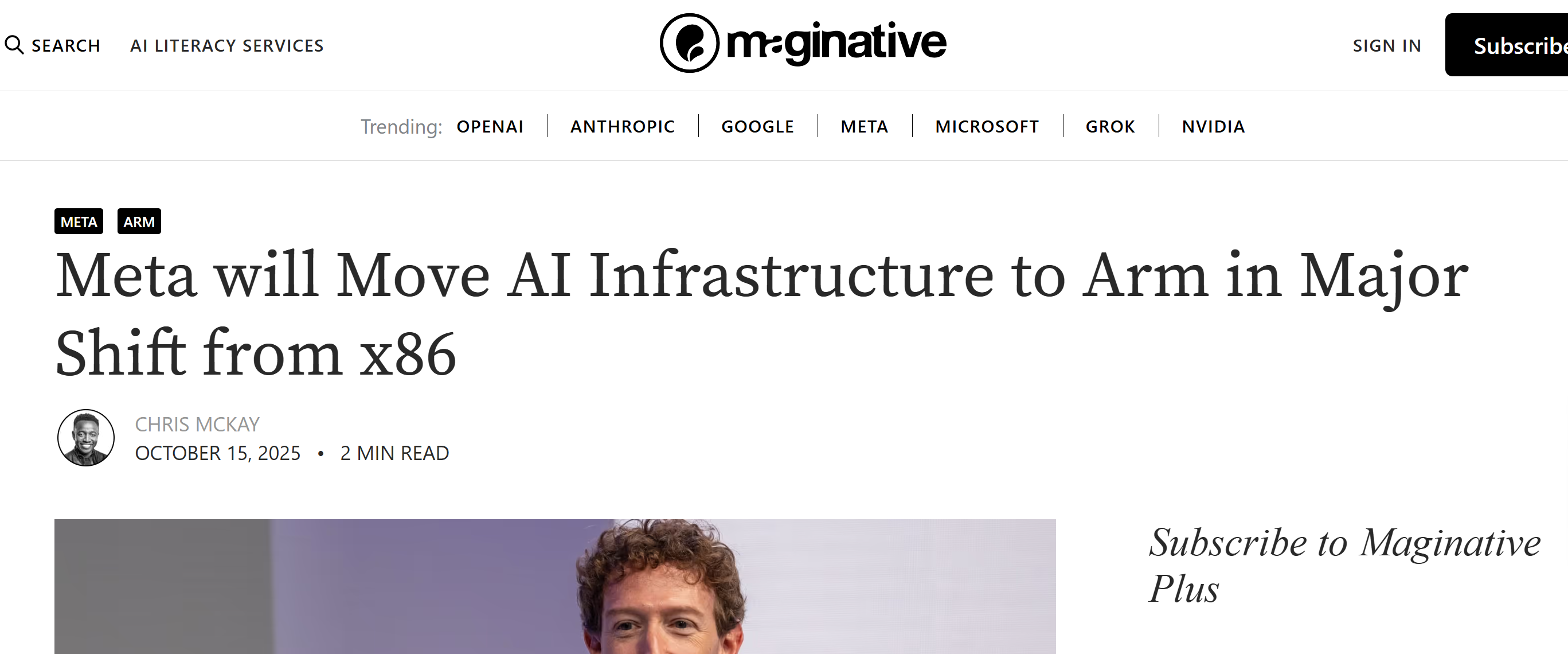 【環球網科技綜合報道】10月16日消息,據Maginative報道,當地時間15日,科技企業Meta與Arm宣佈深化在軟硬件領域的戰略合作。此次合作將結合Arm在節能計算領域的領先優勢,以及Meta在AI驅動產品、基礎設施建設和開放技術創新方面的積累,致力於為全球數十億用户打造更豐富、更高效的使用體驗。
