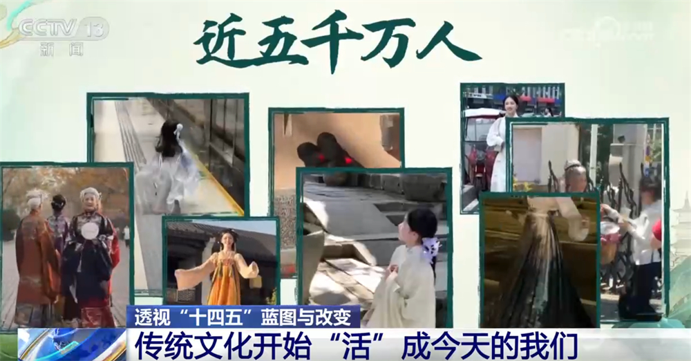 央視網消息: 過去,我們在課本里背古詩、學歷史;今天,我們身着漢服走上街頭,在旅行打卡、短視頻創作中重新感受傳統。五千年的文化正在從書頁走向街頭,從展廳走進生活,成為我們日常的一部分。“十四五”的五年,讓文化真正“活”在了當下,也“活”進了我們的生活。