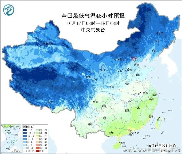 19日至20日(下週一)早晨,寒冷將抵達本輪巔峯,最低氣温降至-5℃。