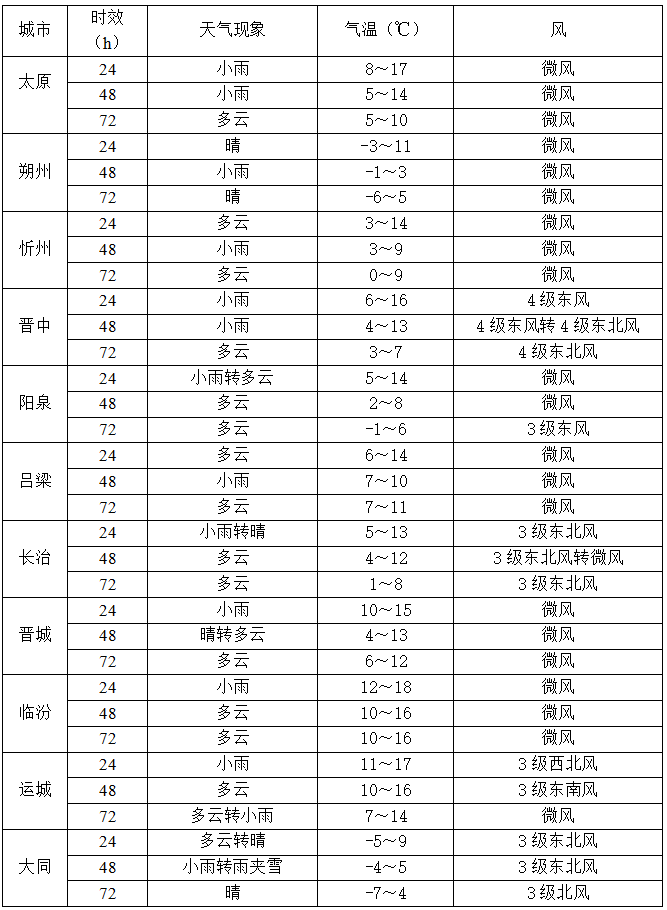山西省氣象台2025年10月17日10時39分變更寒潮藍色預警,預警區域:忻州市東部、晉中市北部、朔州市、大同市、陽泉市。