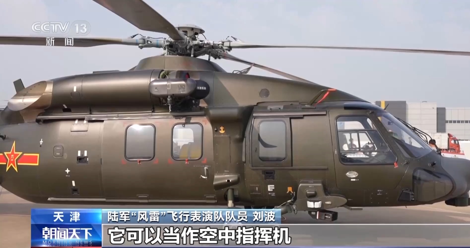 *總枱央視記者 崔霞:*大家看到了這一架就是我們國家自主研製的戰術通用直升機——直-20,它最關鍵的就是“通用”兩個字,“通用”體現在哪裏?今天我們一起走近直-20。