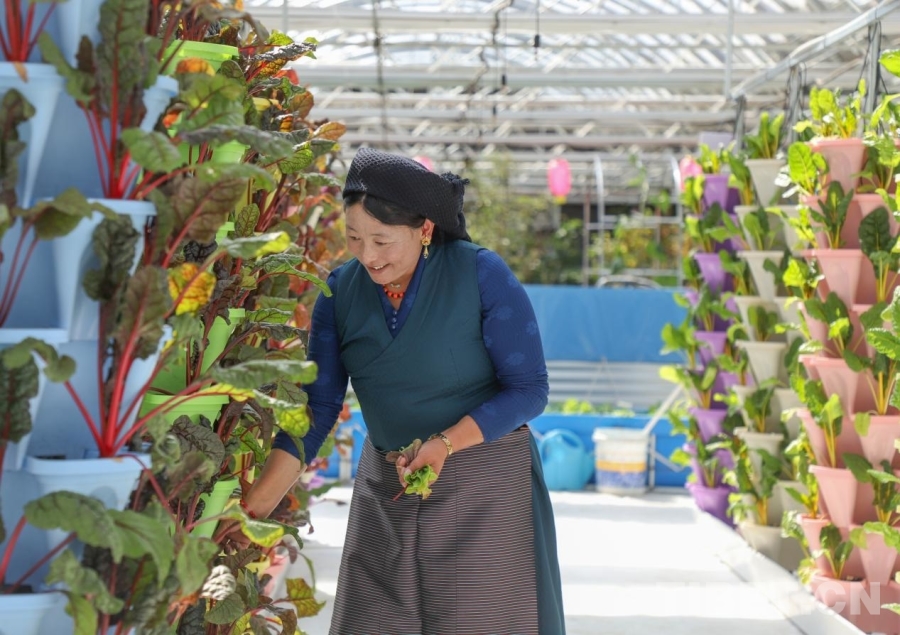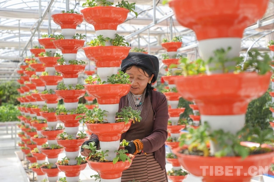 “這裏工作穩定,每月能掙4200元,還能學到先進的種植技術。”正在大棚忙碌的塔巴村村民尼瑪笑着説。