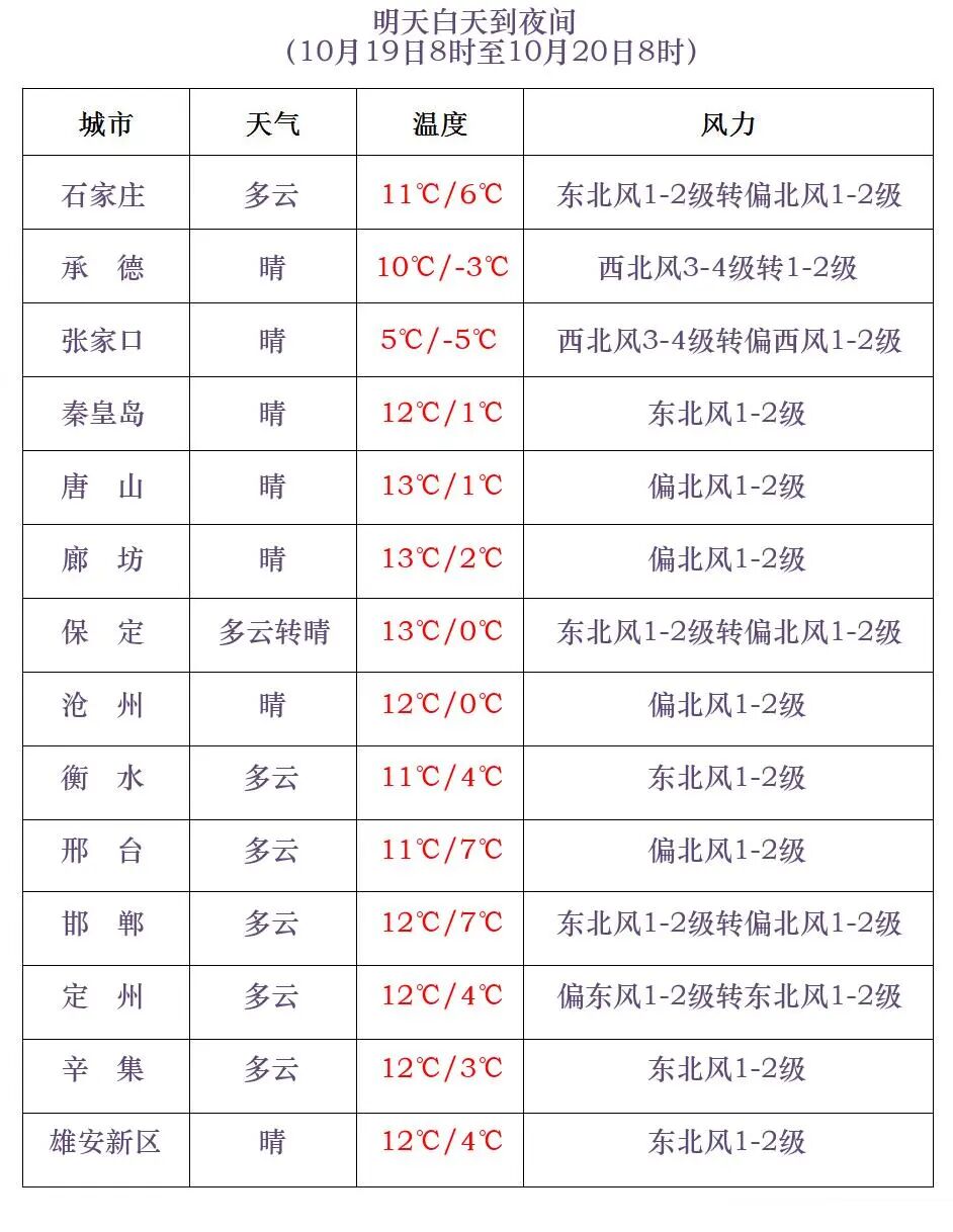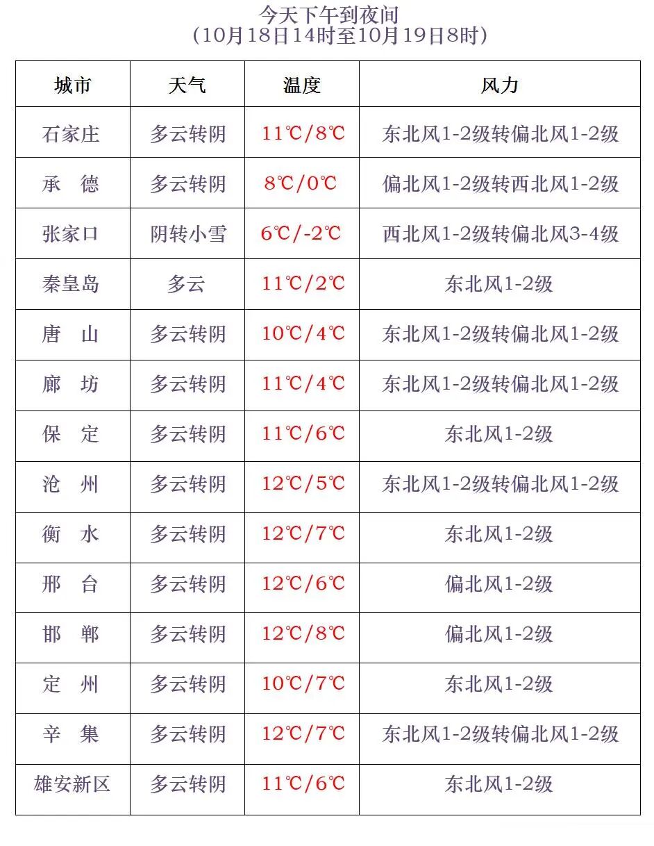 河北省氣象台2025年10月18日11時發佈天氣預報: