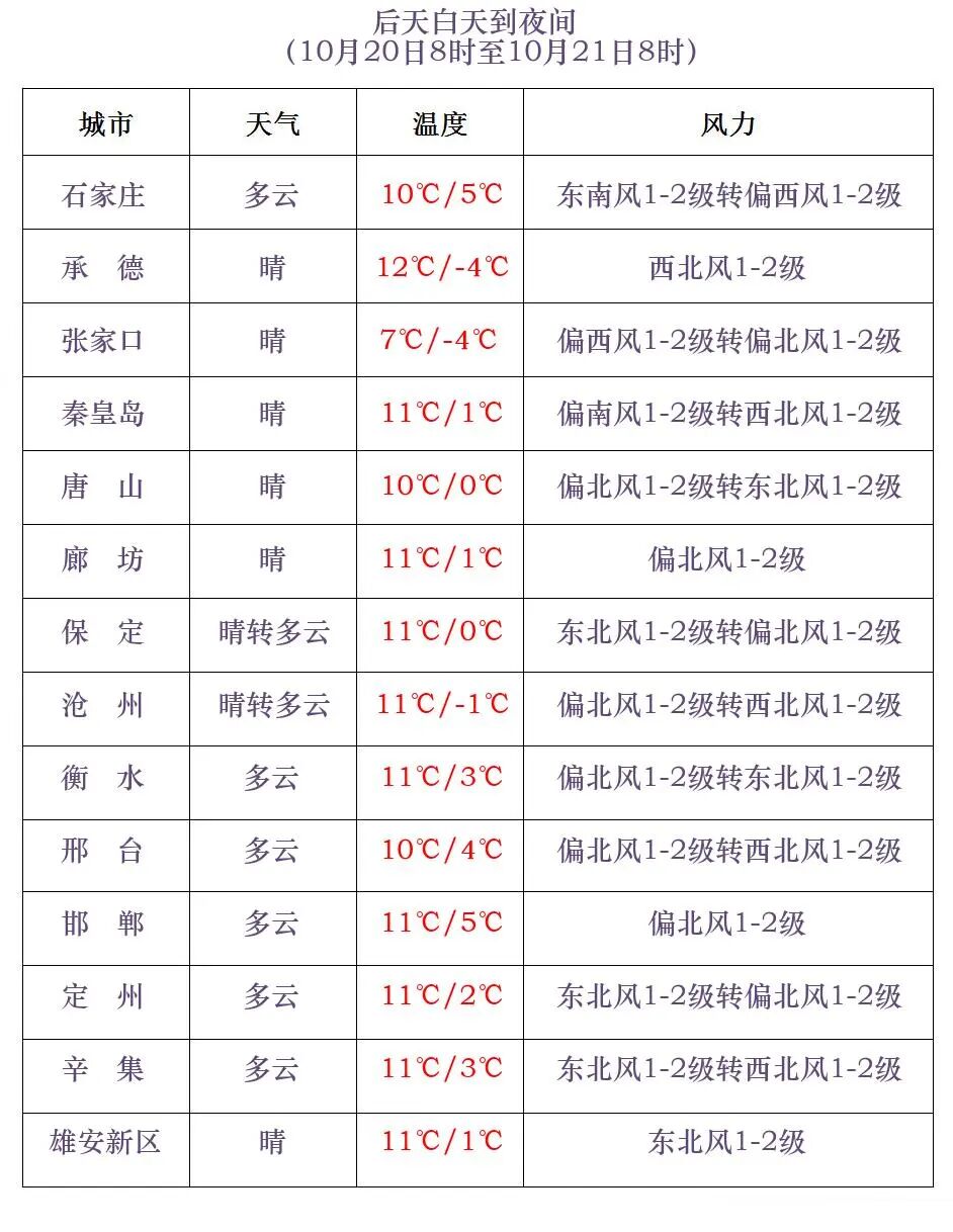 明天夜間到20日,保定南部和石家莊、衡水及以南地區多雲間晴,其他地區晴間多雲。20日早晨,東部地區最低氣温下降3~5℃。