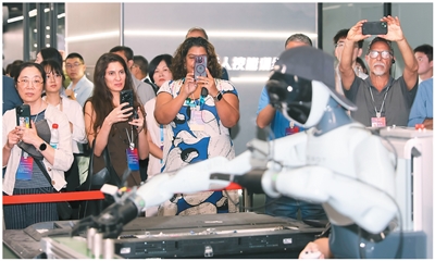 大會開幕前夕,眾多與會專家學者在上海蔘加了“中國式現代化”主題參訪活動。從上海博物館東館跨越數千年曆史的珍貴文物,到張江機器人谷百餘台形態各異的人形機器人,嘉賓們穿梭於古老文明與現代科技之間,沉浸式感受中國的多元魅力。