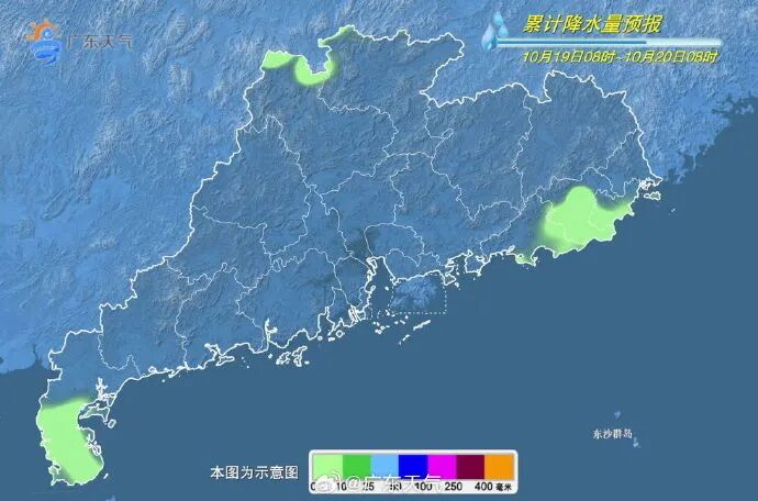 19日,粵北偏北市縣陰天,有分散小雨,粵東市縣多雲轉陰天有分散陣雨,其餘市縣多雲。最高氣温:清遠北部和韶關北部22~27℃,粵北其餘市縣和珠三角北部市縣28~31℃,其餘大部市縣31~33℃。