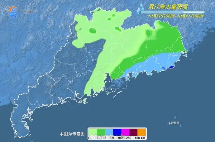 20-21日,梅州南部、河源南部、粵東、珠三角南部市縣陰天間多雲,有陣雨,其中沿海市縣局部有大雨,其餘市縣多雲,局部有陣雨。21日最高氣温:粵北市縣15~20℃,南部沿海市縣24~26℃,其餘大部分市縣20~24℃。