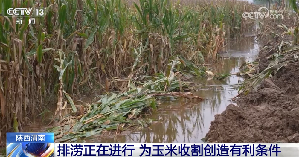 陝西渭南市近期遭遇持續降雨天氣,導致部分玉米地出現積水,當地水利部門採取多種措施積極排水,為收割工作創造有利條件。