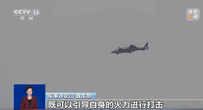 *軍事評論員 魏東旭:*在天津直博會上展出的這架直-19,最重要的是它主旋翼頂端上的一個設備,其實它是一個小型的雷達,無論是針對低空飛行的目標,還是針對地面的移動目標,它都可以使用多種手段去進行目標的探測和識別,既可以引導自身的火力進行打擊,也可以把信息傳遞給自己的夥伴。