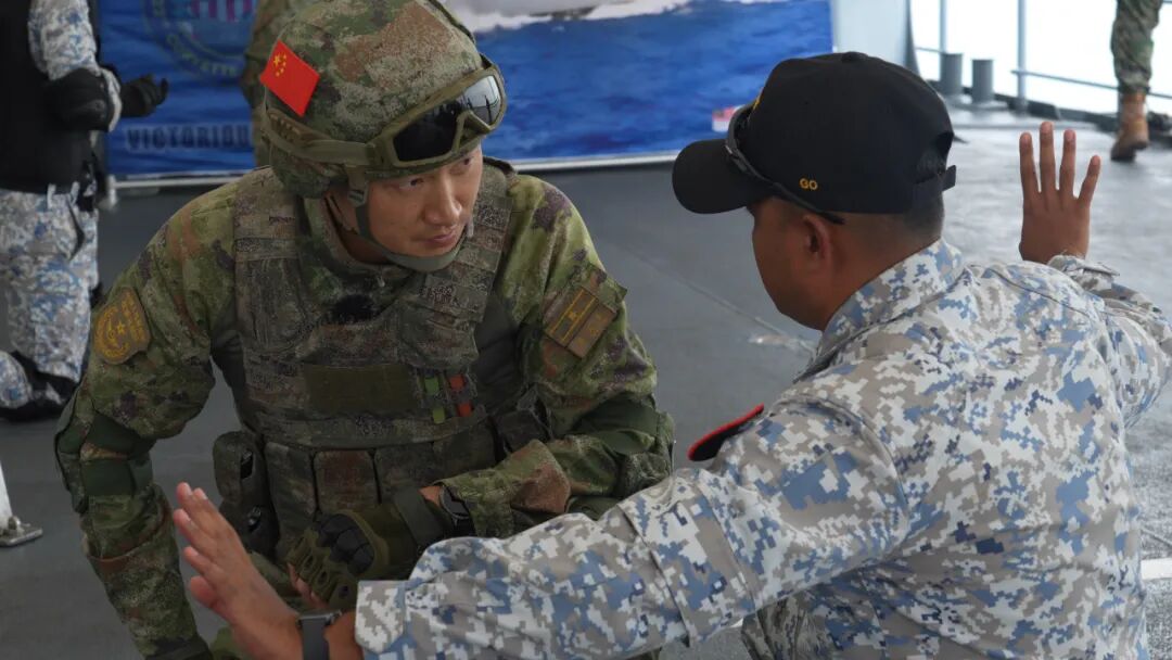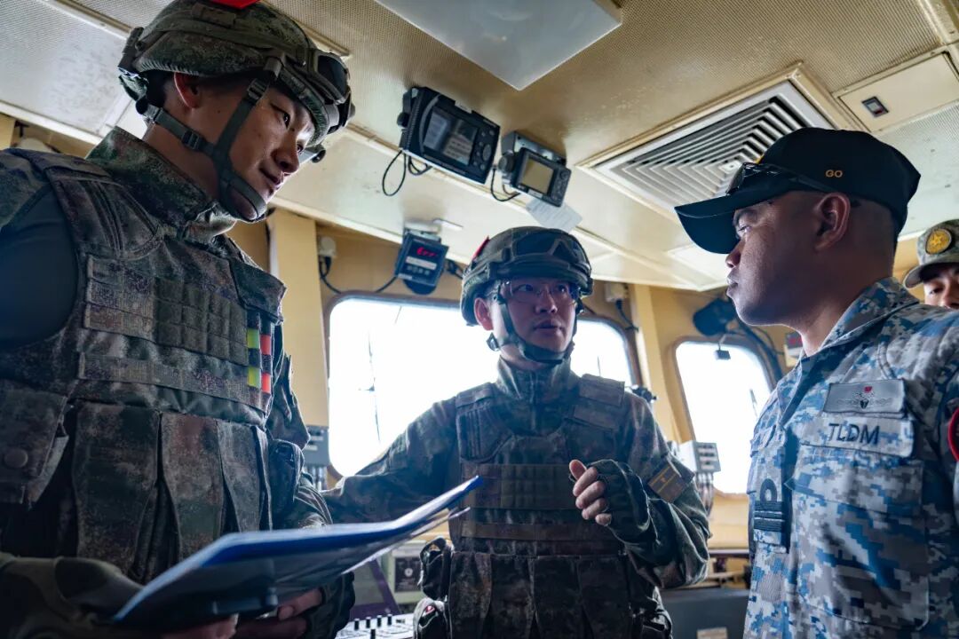 自13日抵達馬來西亞演習區域以來,雙方參演官兵採取交叉學習、混編合訓方式,組織基礎課目交流、行動目標討論、臨檢拿捕訓練、直升機垂直補給行動對接及現場勘察等演習重點內容,圍繞海上安全、兩棲作戰行動等重難點問題進行研討交流。雙方官兵相互學習、取長補短,在穩步提升訓練質效的同時,不斷增進彼此之間的互信和友誼。