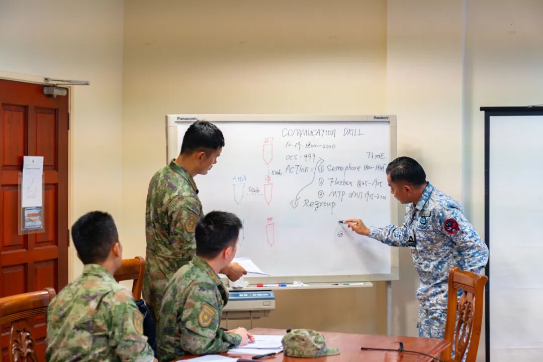 雙方圍繞編隊運動、艦艇通信、登陸作戰等多課目積極磋商,不斷完善方案預案,為後續海上實兵演練順利開展夯實基礎。