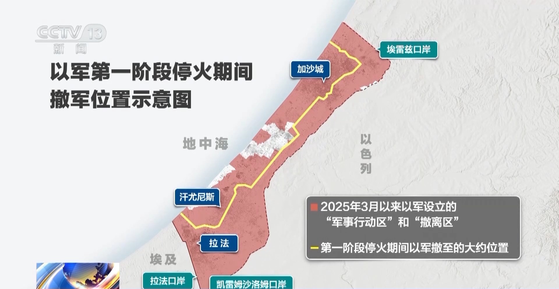 今年1月,巴以達成臨時停火協議後,拉法口岸一度重新開放。但3月以軍向拉法發佈“撤離令”後,口岸再次關閉。此後,從埃及一側進入的國際人道物資要繞經凱雷姆沙洛姆口岸、接受以方檢查後才能進入加沙,加沙人道主義困境持續加重。