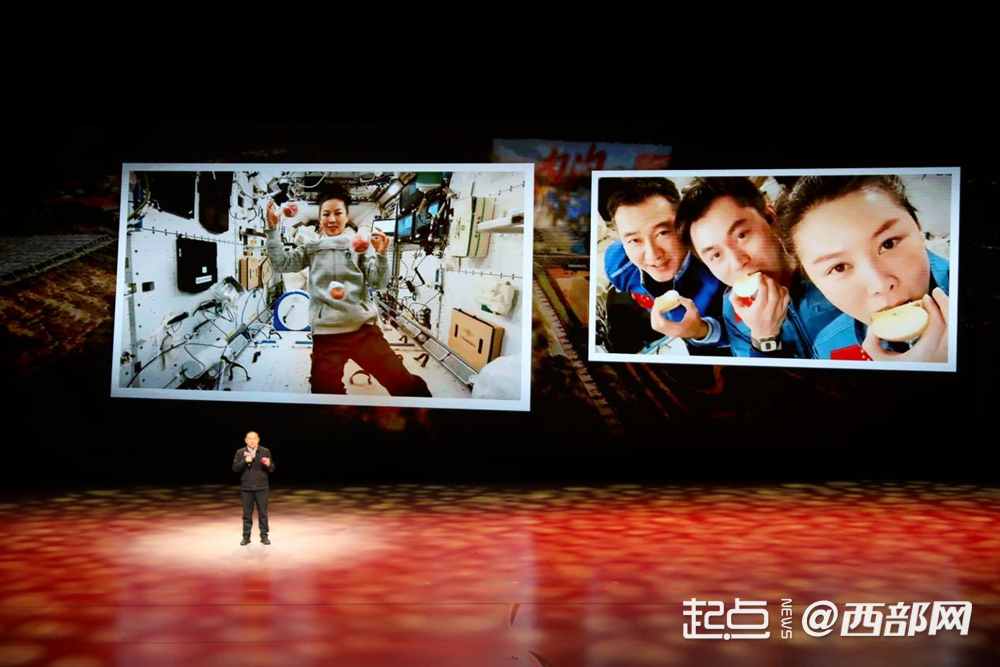 延安市安塞區南溝村原駐村幹部張光紅分享了延安蘋果“飛”上太空的喜訊,神舟二十號乘組在中國空間站向活動送來美好祝願。
