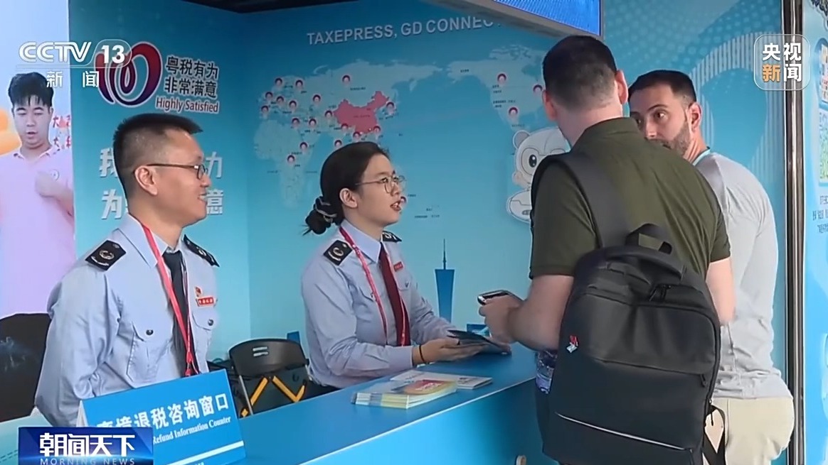隨着多項免籤政策落地,以及離境退税起退點降至200元、現金退税限額提高至2萬元等政策紅利釋放,廣交會客商及國際遊客的消費熱情被進一步點燃。為便於客商和遊客及時退税,主辦方還提供了志願服務。
