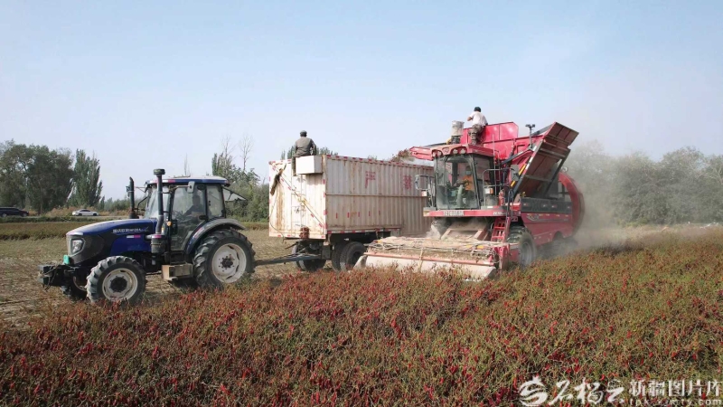 9月3日,新疆新研牧神科技有限公司自走式辣椒收穫機在焉耆回族自治縣進行辣椒收穫作業。周敍傑 攝