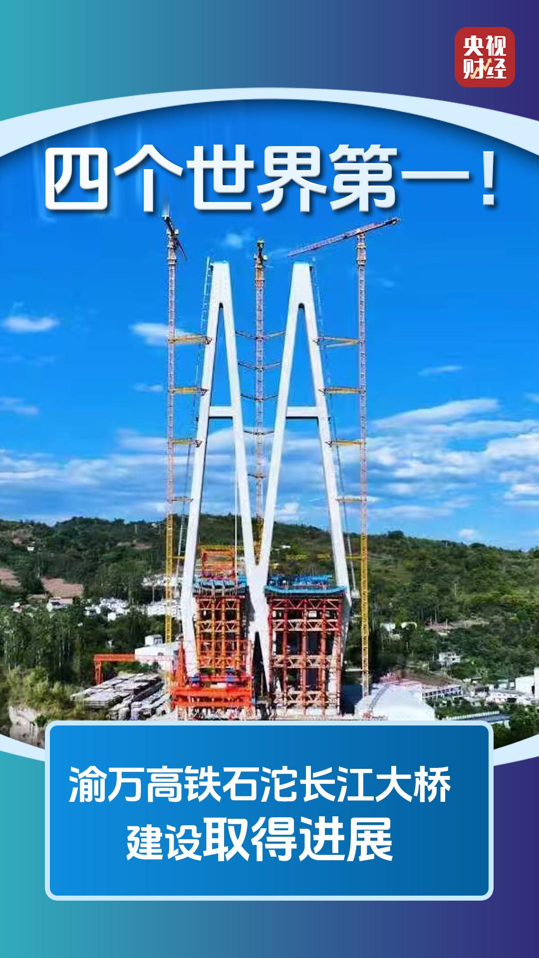 石沱長江大橋正線長度1416.9米,是渝萬高鐵項目建設關鍵節點及控制性工程,大橋建成通車後,將創下四個世界第一:世界首次採用公鐵合建雙聯塔、世界首次採用公鐵同層分幅主樑,6#主塔高253米,是世界最高雙聯主塔;主跨跨度608米,是世界最大公鐵合建同層分幅混合梁斜拉橋。