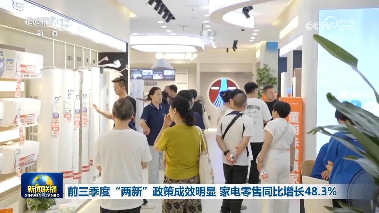 前三季度“兩新”政策成效明顯 家電零售同比增長48.3%