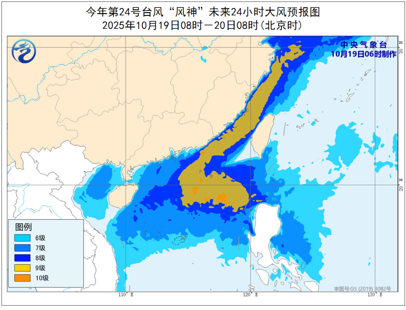 中央氣象台10月19日06時發佈颱風藍色預警: