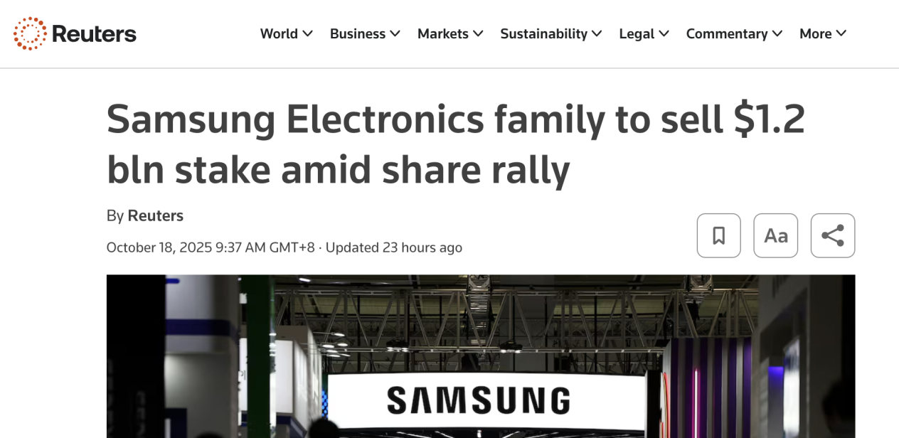 專家指出,此次由李在鎔的姐姐以及母親發起的股份出售,是已故創始人李健熙家族為籌措約12萬億韓元遺產税而採取的一系列舉措之一。李健熙於2020年去世。