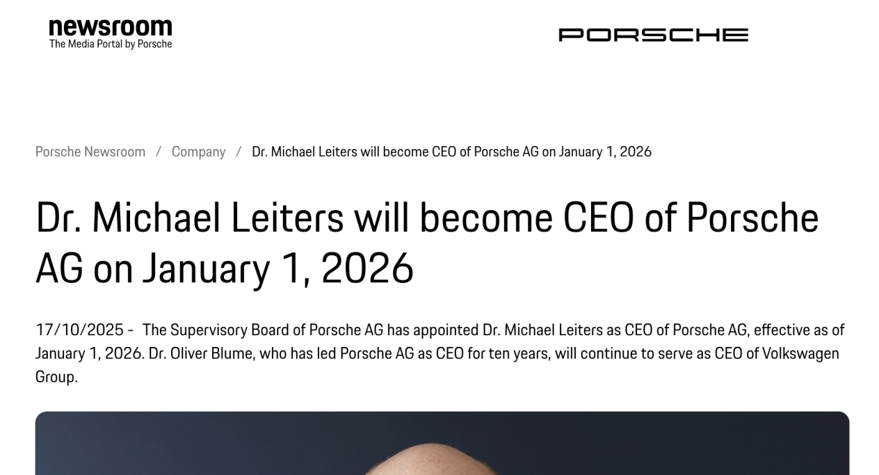 保時捷高層人事調整:邁克爾·萊特斯將於2026年出任CEO