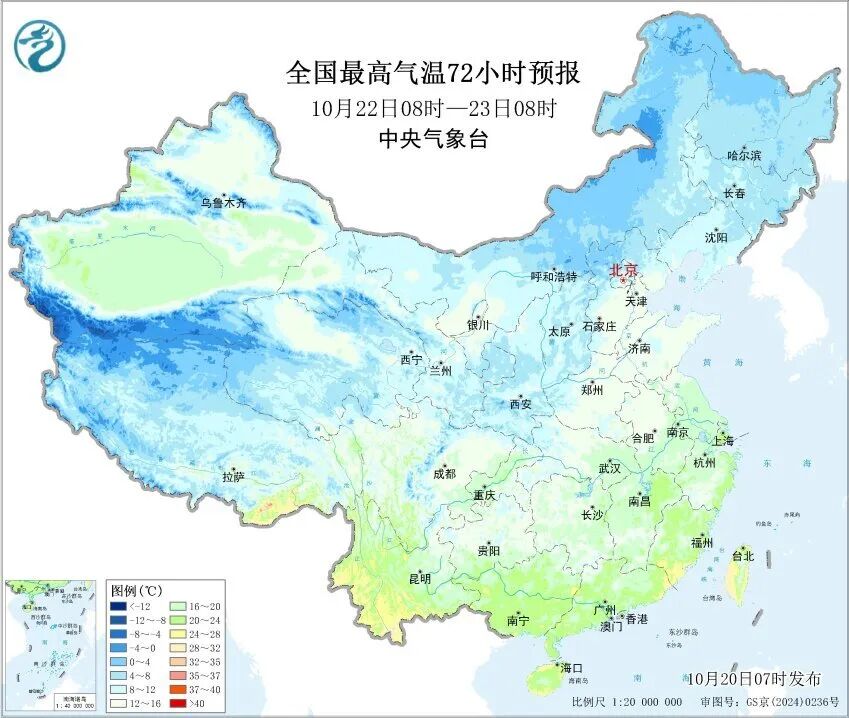 今明兩天,冷空氣繼續東移南下,中東部氣温普遍將再下降4至8℃,局地降幅可達10℃。北方氣温維持低位的同時,南方氣温也將普遍轉為偏低,內蒙古、東北地區等多地最高氣温僅有個位數,最低氣温0℃線位於華北北部至陝西北部、甘肅東部一帶。這股冷空氣也會推動季節轉換,華北多地入冬,江南一帶則會全面入秋。
